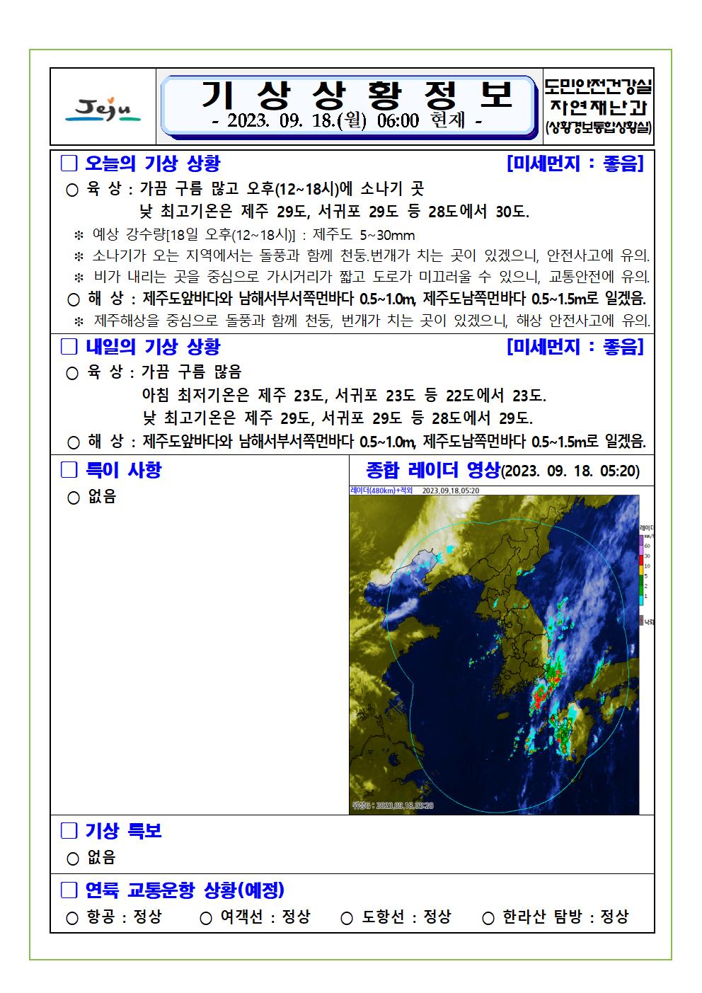 기상상황 2023. 9. 18. 월요일