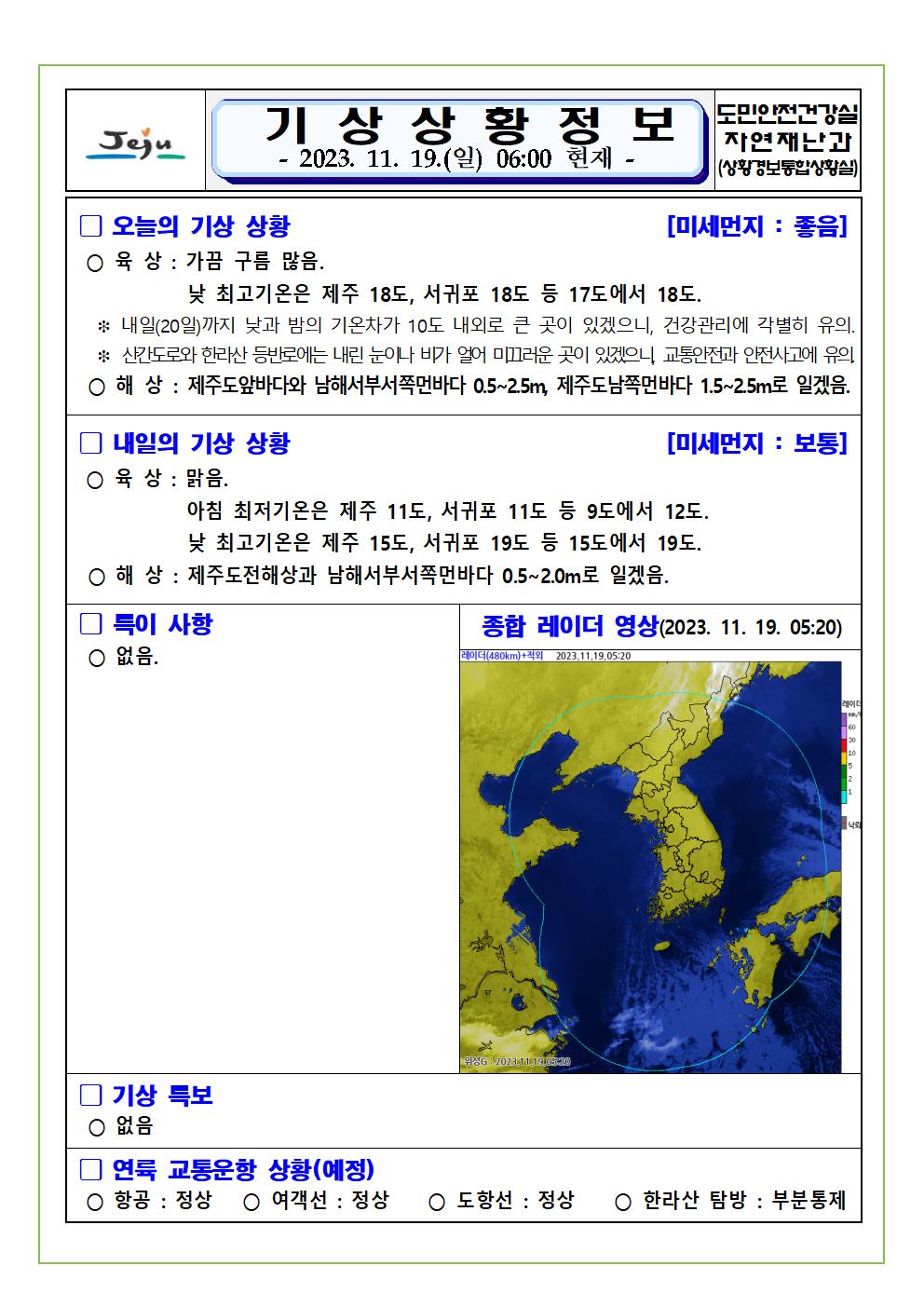 기상상황 2023. 11. 19. 일요일