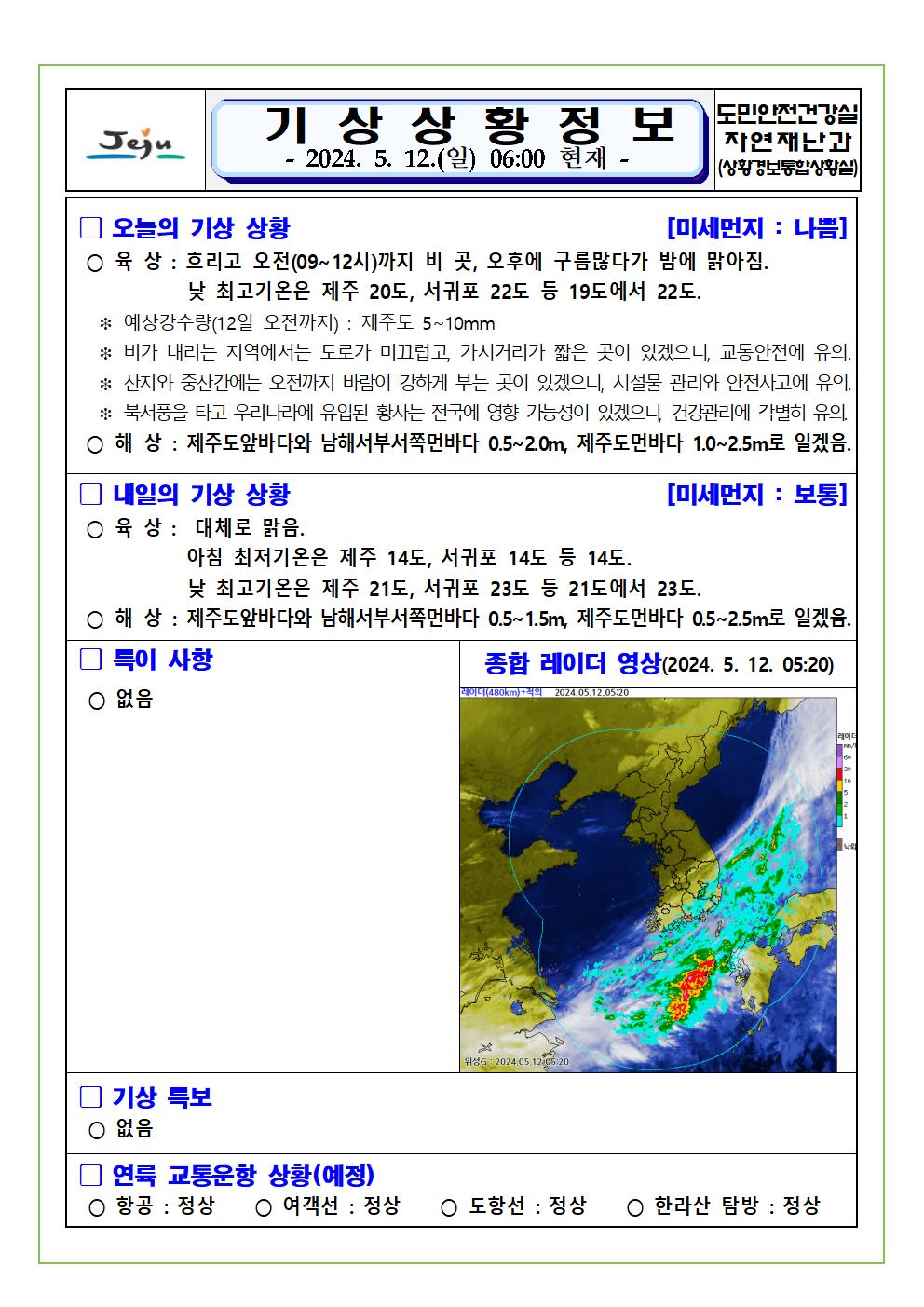 기상상황 2024. 5. 12. 일요일