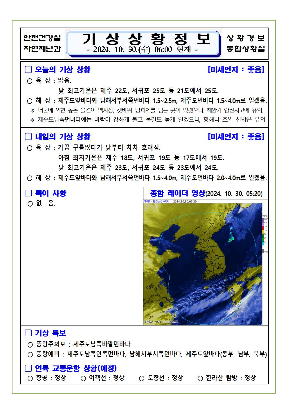 기상상황 2024. 10. 30. 수요일