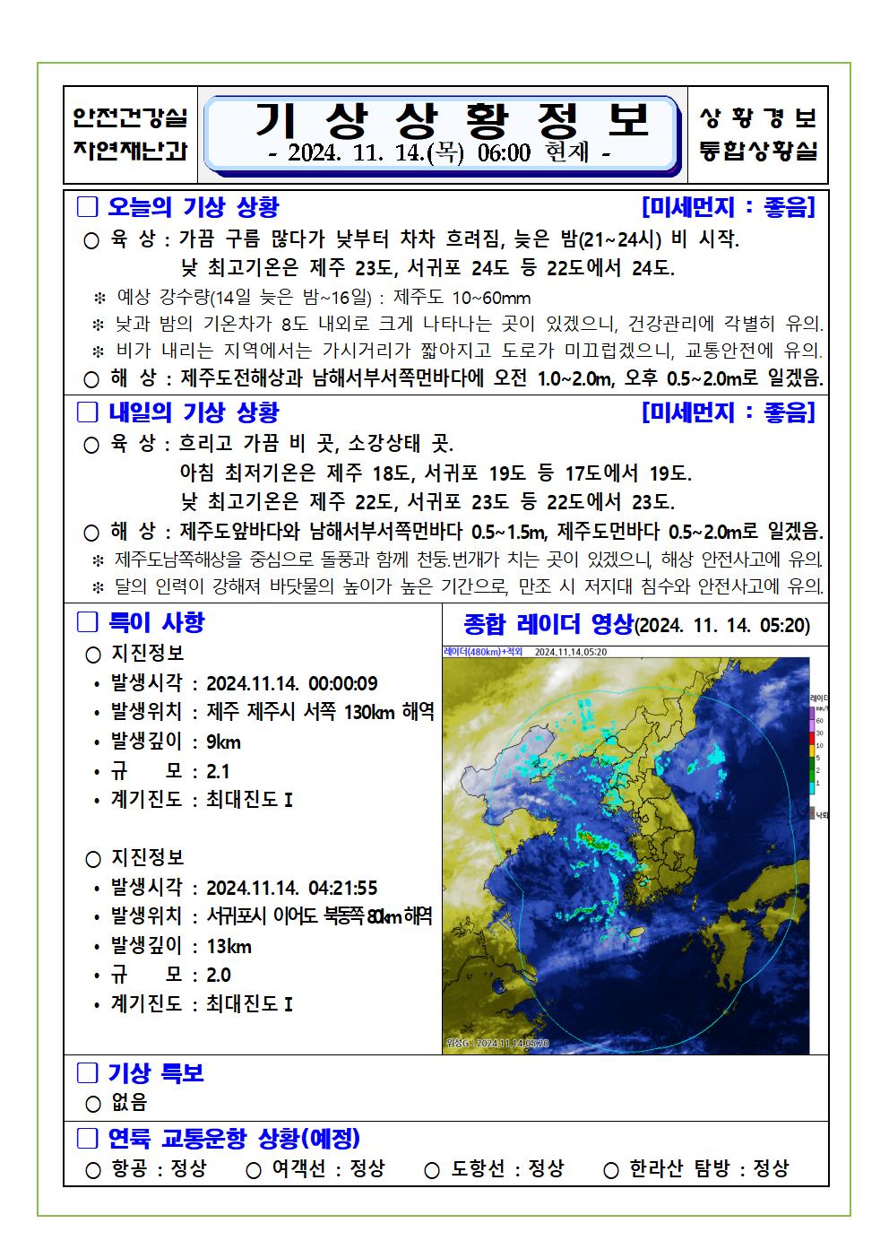 기상상황 2024. 11. 14. 목요일