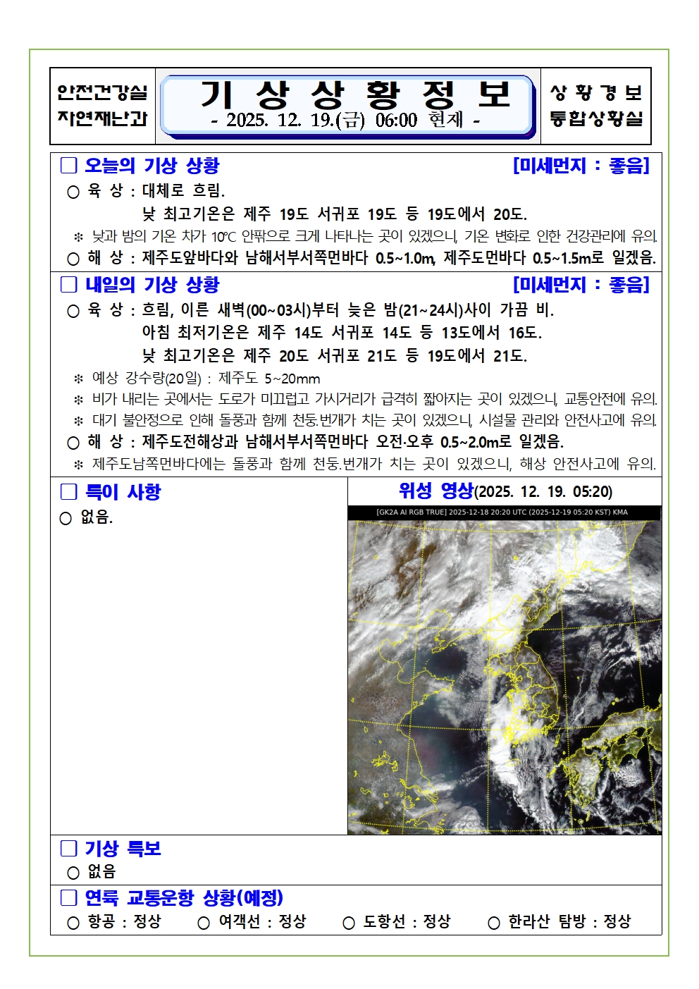 기상상황 2025. 12. 19. 금요일