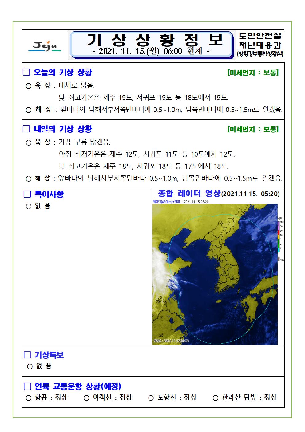 기상상황 2021.11.15. 월요일