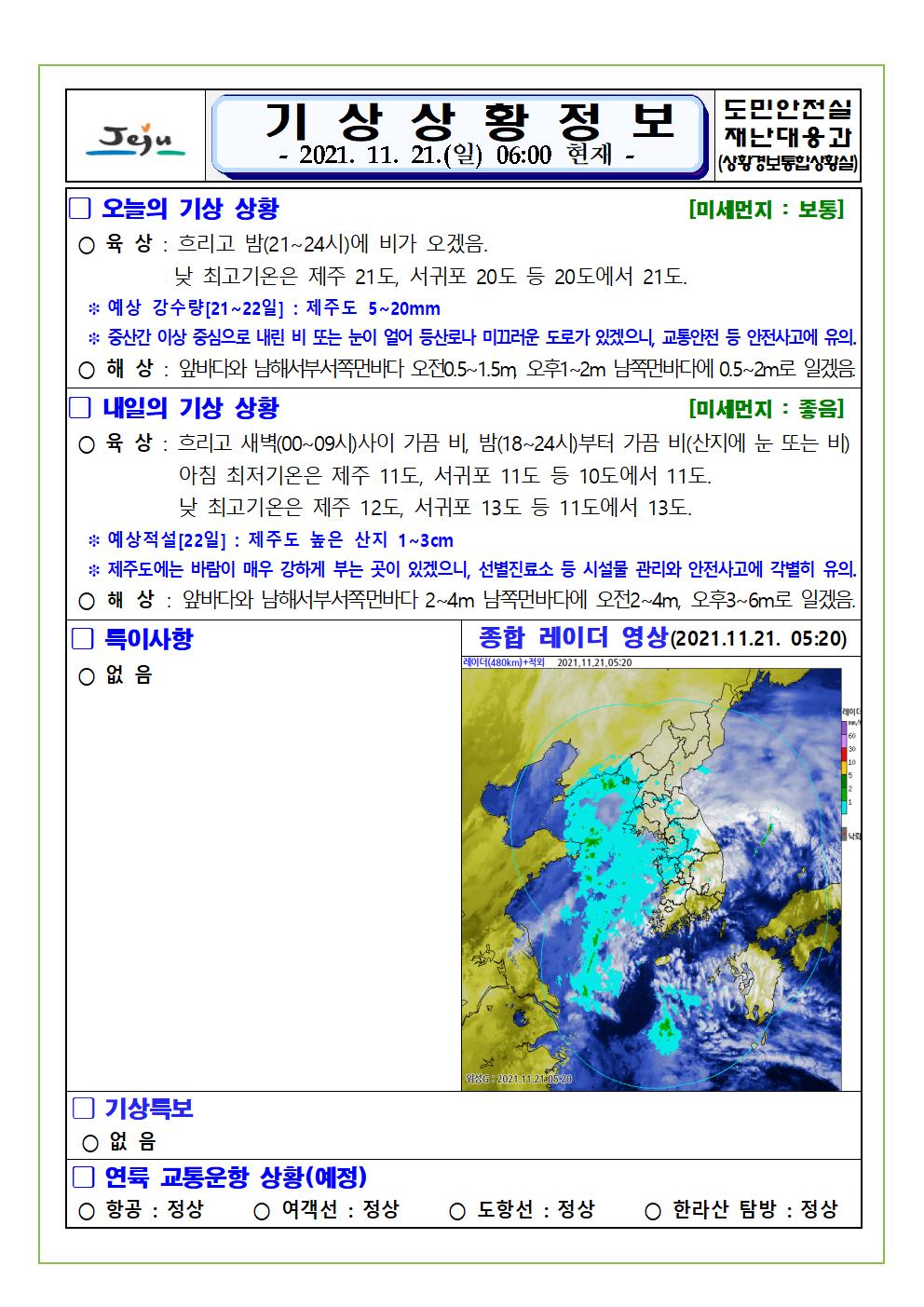 기상상황 2021.11.21. 일요일