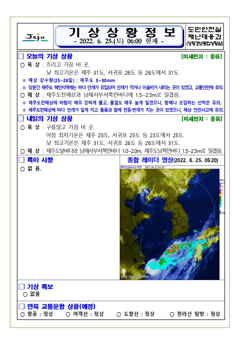 기상상황 2022.06.25. 토요일