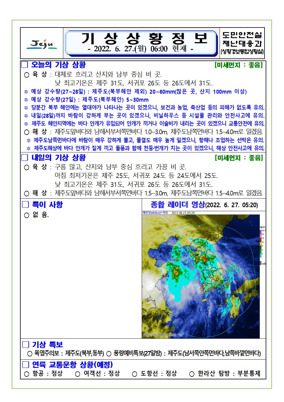 기상상황 2022.06.27. 월요일