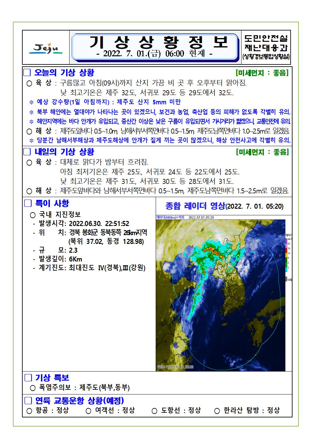 기상상황 2022.07.01. 금요일