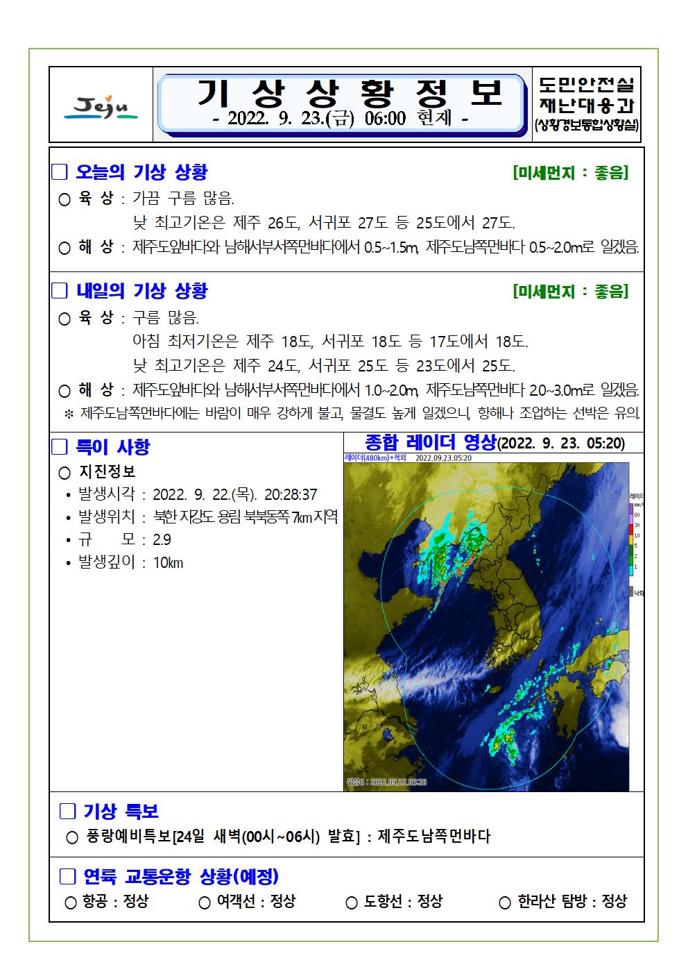 기상상황 2022.09.23. 금요일