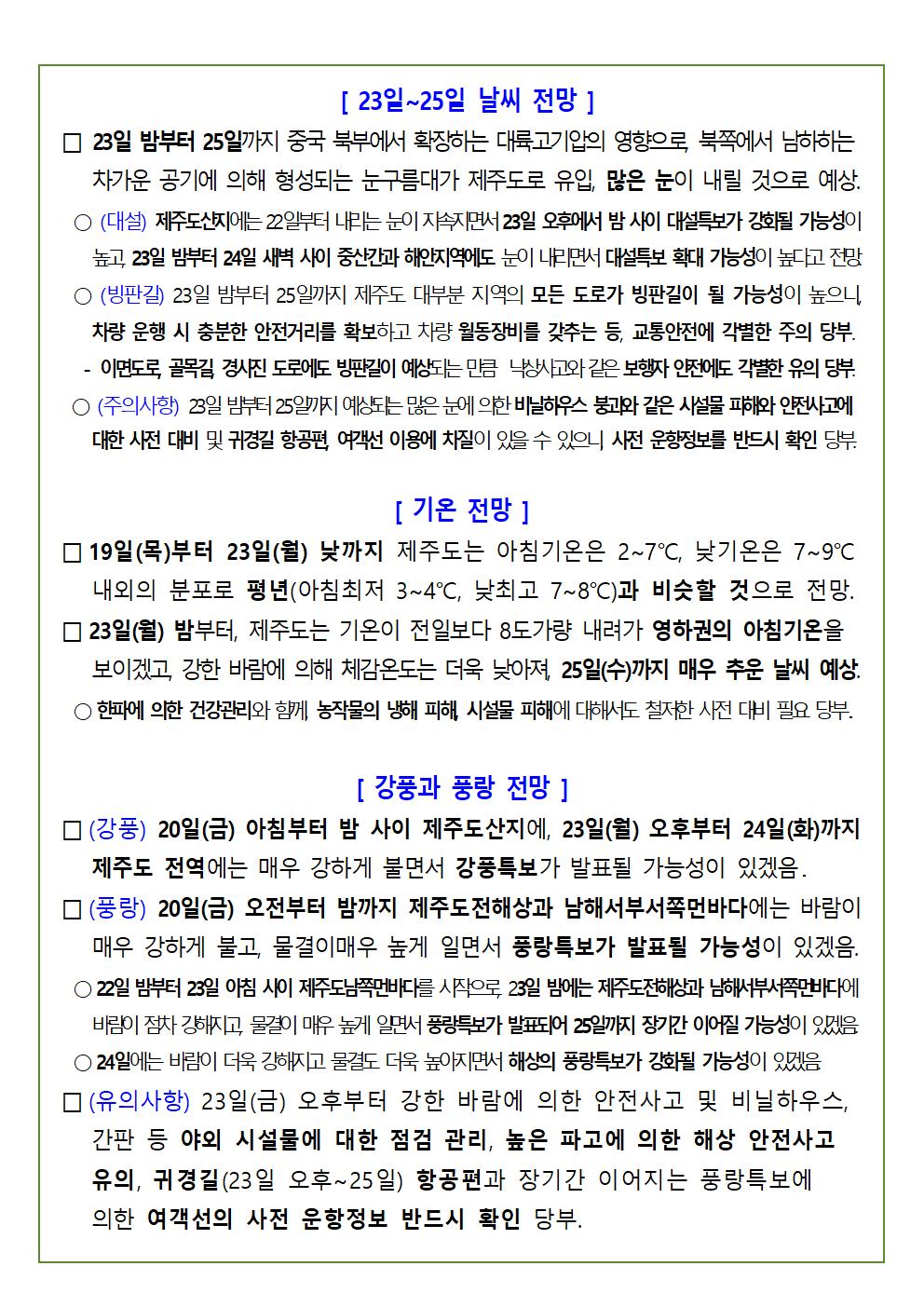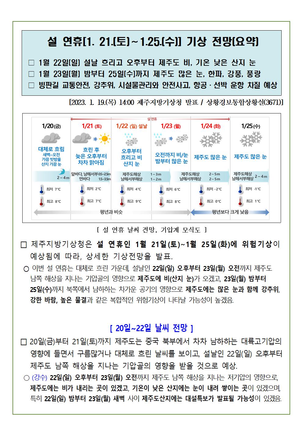 설 연휴[1.21.(토)∼1.25.(수)] 기상전망 |